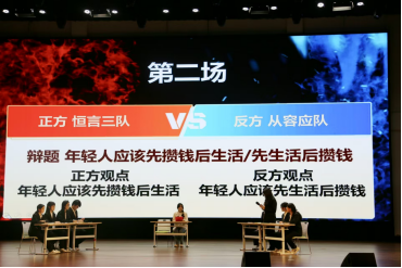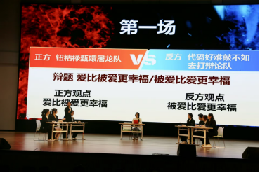 激情澎湃的开场舞过后,参赛队伍接连上场。辩手们准备充分,在一次次的交锋中抓住对手的破绽,展现出娴熟的辩论技巧。本次辩论赛分为两场,第一场为“钮钴禄甄嬛屠龙队”对战“代码好难敲不如去打辩论队”,双方妙语连珠,就“爱与被爱哪个更幸福”的话题展开激烈的讨论,有理有据而又不慌不忙地将本队的观点展现出来。第二场辩题为“年轻人应该先攒钱后生活/先生活后攒钱”,“恒言三队”和“从容应队”你来我往唇枪舌战,在语言的碰撞中交流彼此的思想方式和立场,给观众带来了有趣的辩论体验。