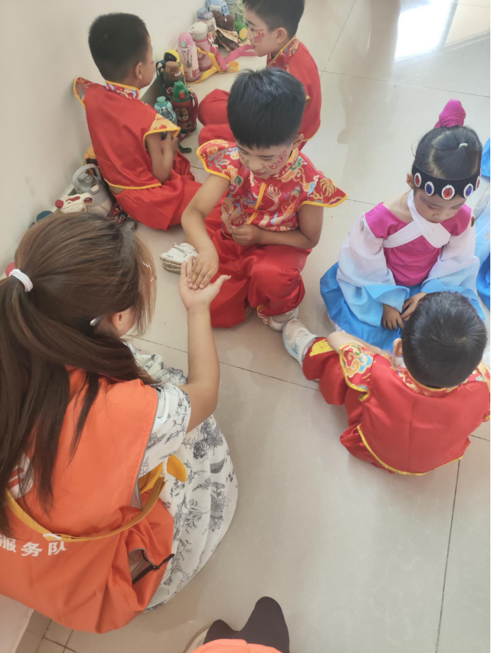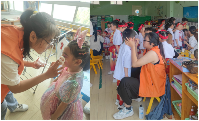 按照事先分配的任务,每位志愿者都认真做好工作。过程中耐心细致,确保小朋友的安全和舒适。为了增加活动的趣味性,志愿者们在化妆过程中还穿插了一些简单的互动游戏,让小朋友们更加开心。准备出发时,志愿者们还替小朋友们整理服装,提醒他们带好水杯等贴身物品。小朋友出发后,部分志愿者留下及时清理了现场杂物,保证幼儿园的环境整洁。